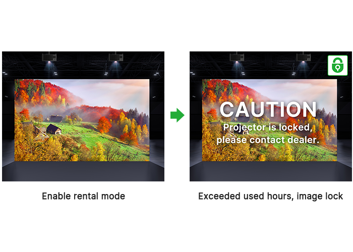 租賃商為客戶安裝投影機後,可設置租賃期限,租賃期滿將自動出現遮罩畫面。